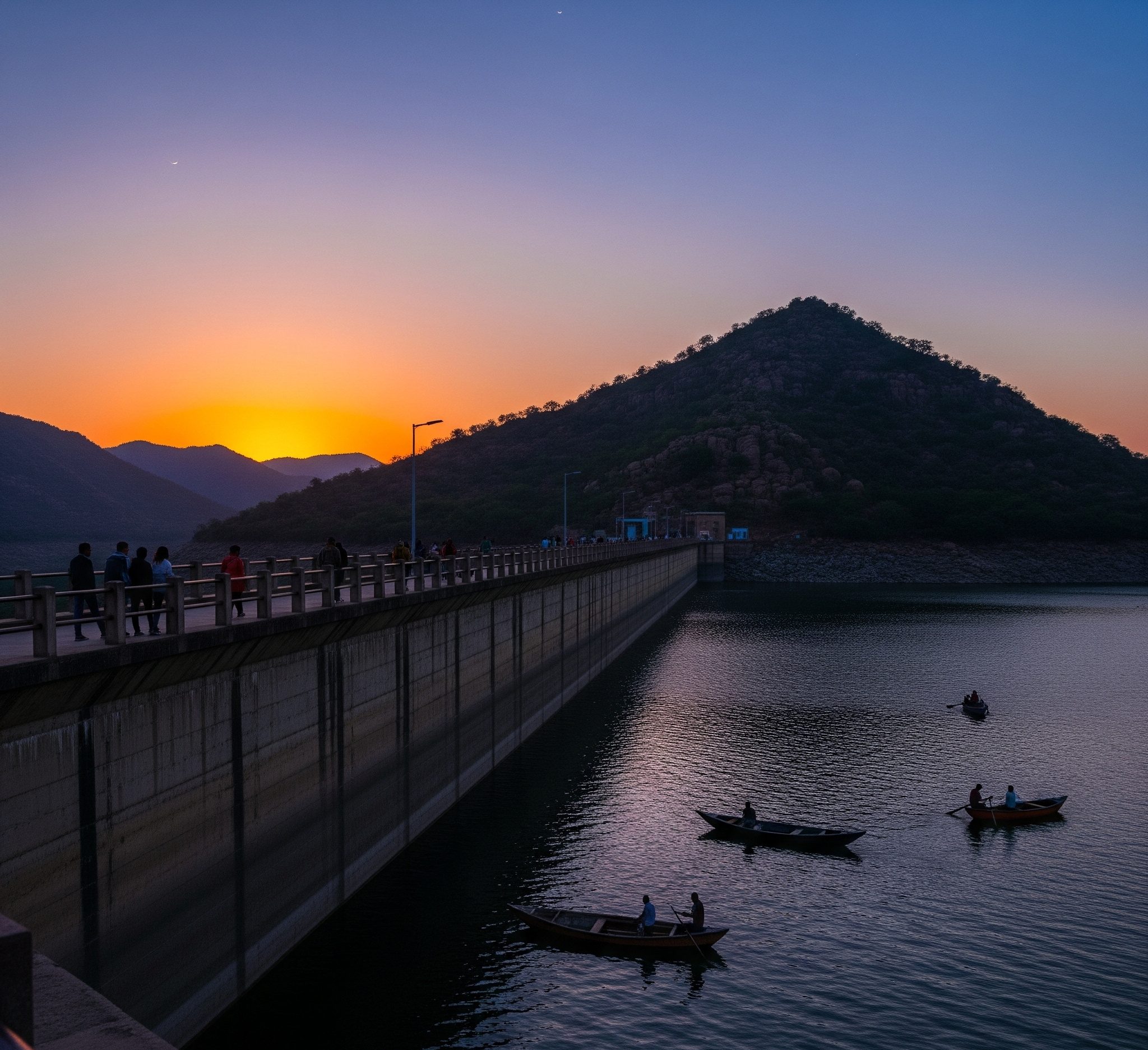A visit to the Jawai Dam is a refreshing experience that perfectly combines natural beauty with peaceful surroundings. Built across the Jawai River, this massive dam is not only a vital water source but also a scenic attraction that draws